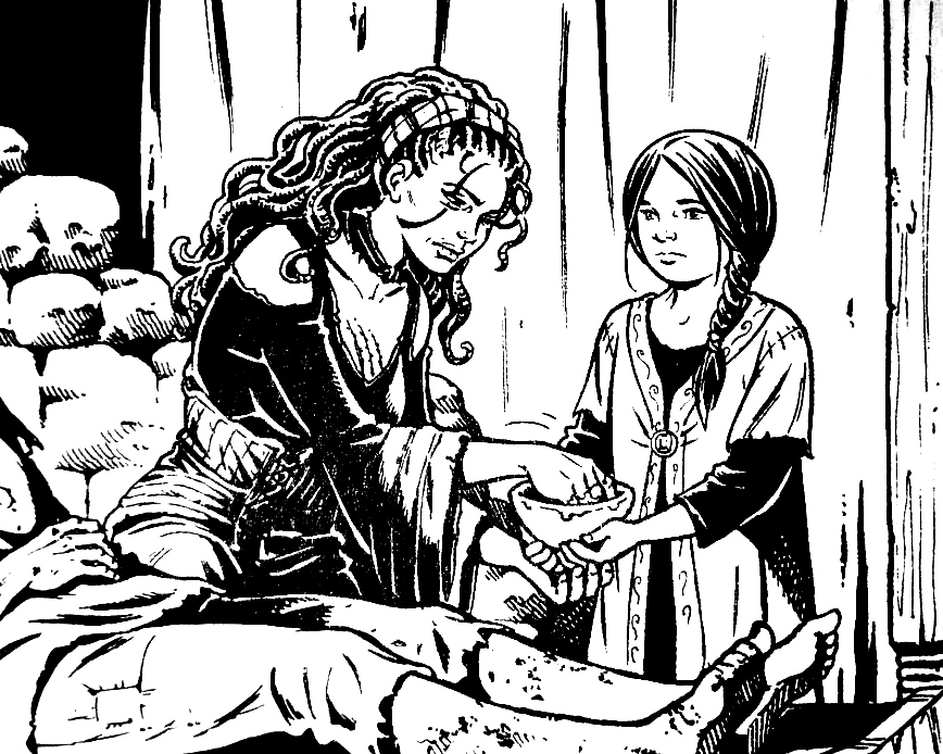 Arysa è una guaritrice e una strega, Umana, che pratica le sue arti nel villaggio di Skarkhel, dando conforto e aiuto ai malati che vi abitano.